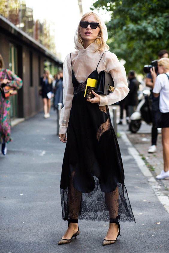 - 시어 드레스에 슬립을 레이어드해 우아한 스타일을 완성하세요.